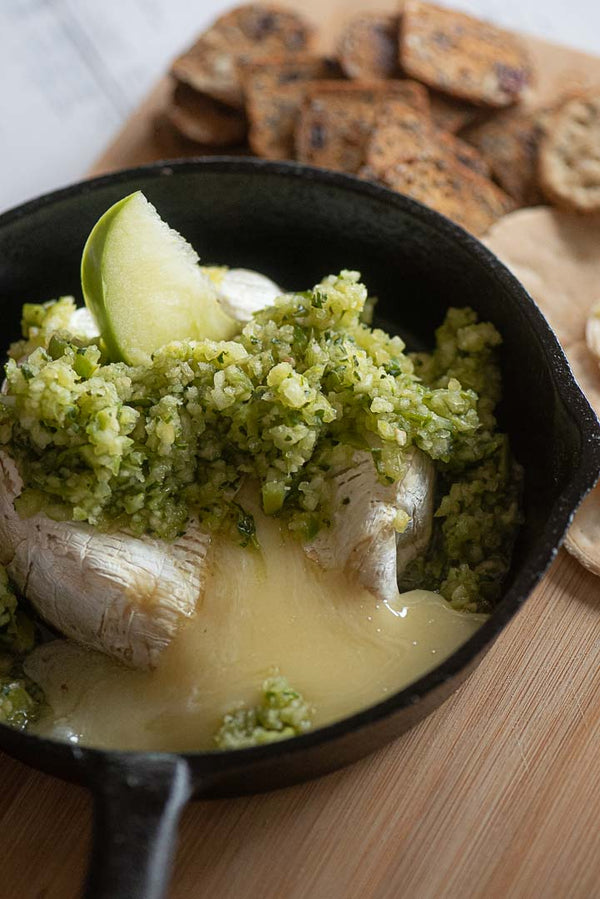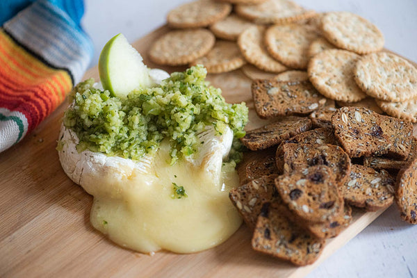 Step 3: Pour tub of Big Daddy’s Green Apple Salsa on top of brie cheese